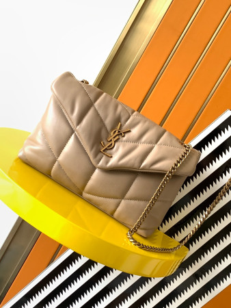 Y*L puffer medium in nappa leather dark beige 13.7 x 9 x 5.3 inches