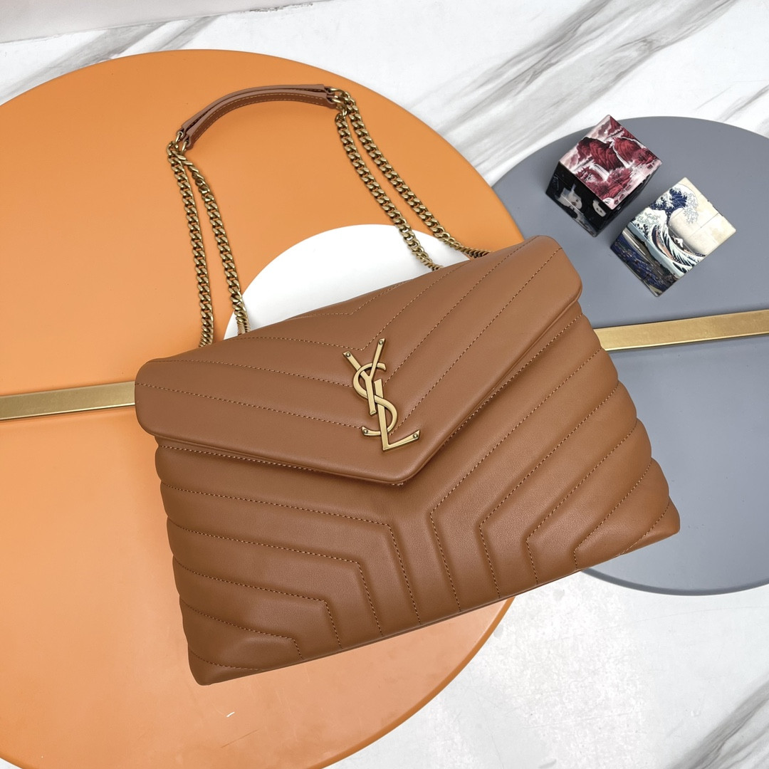 Y*L loulou medium in quilted leather brown 12.5 x 8.6 x 3.5 inches